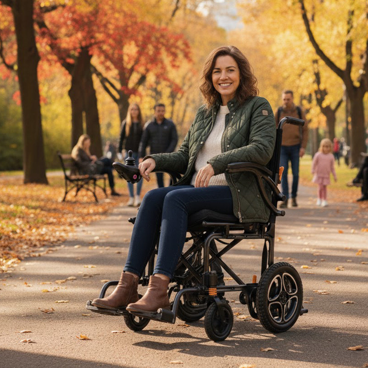 Weighing just 17.7 kg (excluding battery), with a removable 1.5 kg 24V 10Ah battery, the Athens has a total travel weight of only 19.2 kg. This makes it significantly easier to lift, transport, and store compared to many traditional powerchairs, while still supporting a maximum user weight of 136 kg.
