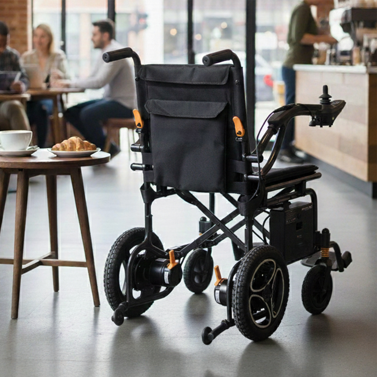 The Roma Athens Powerchair is a compact, lightweight electric wheelchair designed to deliver everyday independence with practical performance. Built with a durable aluminium frame and powered by twin 250W motors, it offers reliable indoor manoeuvrability and confident outdoor capability — all in a highly portable design.