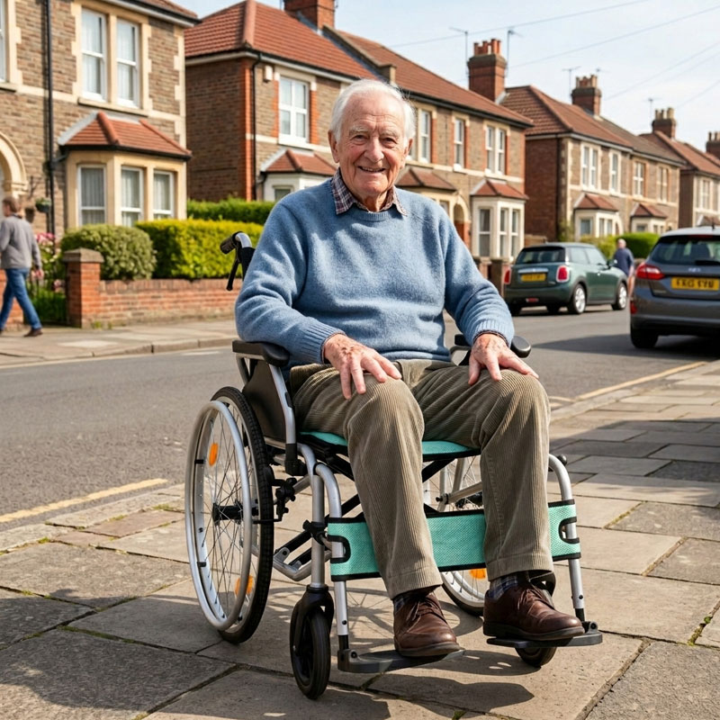 Designed for both indoor and outdoor use, the Wisp combines practicality with comfort. The lightweight frame folds quickly for transport or storage, while features such as flip-up armrests, adjustable footplates, and quick-release wheels make everyday use simple and convenient.